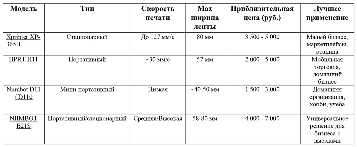 Каждая из рассмотренных моделей занимает свою четкую нишу. Xprinter XP-365B — это надежный фундамент для бизнеса. HPRT H11 — стильный и мобильный помощник. Niimbot D11/D110 — бюджетные организаторы для дома. NIIMBOT B21S — удачный гибрид для тех, кто ищет баланс.